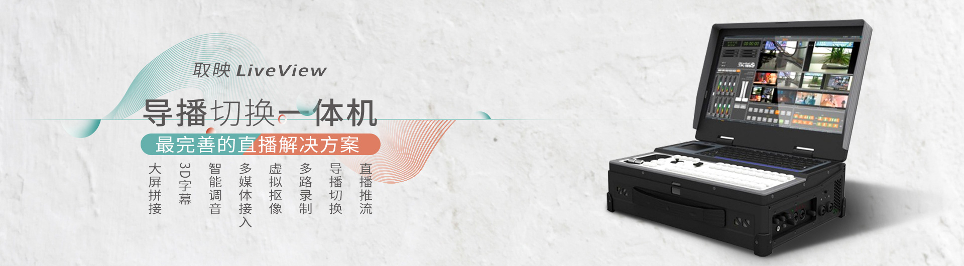 思非電子LiveView系列導(dǎo)播直播一體機(jī)是一套廣電級(jí)專業(yè)音視頻導(dǎo)播切換系統(tǒng),可以完成導(dǎo)播切換、字幕機(jī)、調(diào)音臺(tái)、硬盤播出系統(tǒng)、虛擬摳像、錄像機(jī)、線性編輯等工作,適用于現(xiàn)場(chǎng)直播、廣電系統(tǒng)、網(wǎng)絡(luò)直播、視頻會(huì)議等的現(xiàn)場(chǎng)采編錄...
